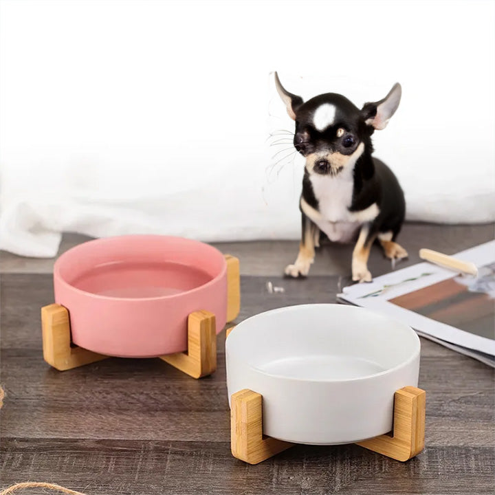 - Material Excellence: Crafted with care from 100% porcelain ceramic and natural wood, this bowl is free of lead and cadmium. The high-temperature ceramic ensures durability, non-toxicity, and a scent-free dining experience, promoting clean sanitation for your pet's health.