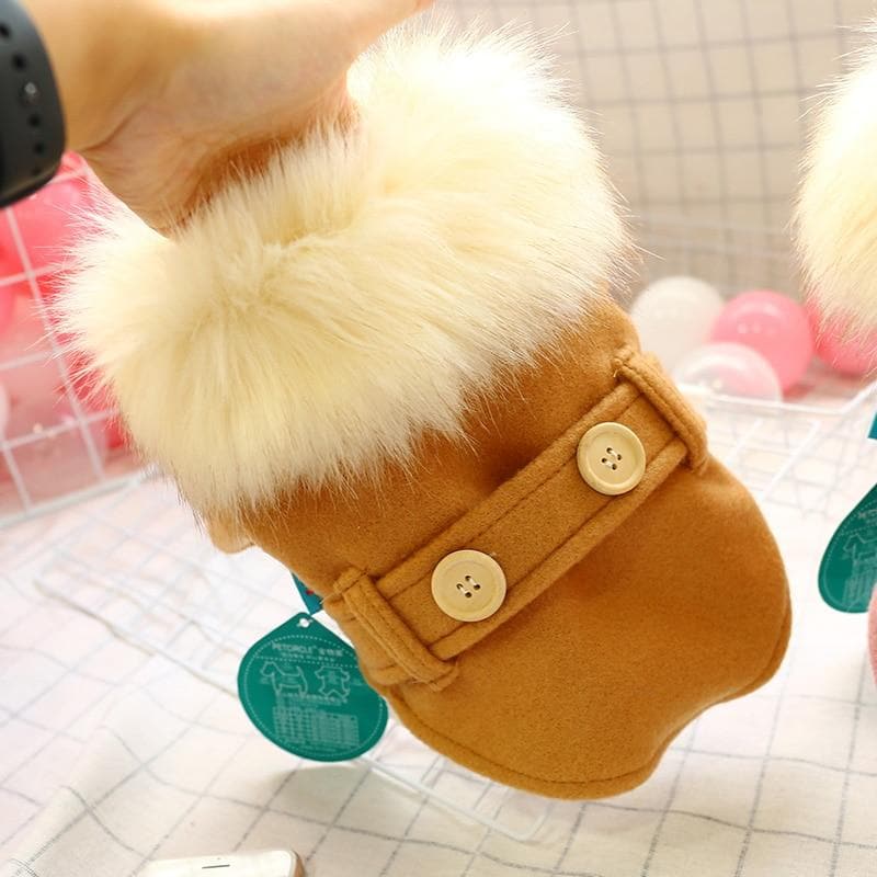 The Warm Faux Fur Fleece Chihuahua Jacket features front button closure which makes it very easy to put on and take off. This makes it very convenient to put on when you go out for a walk. Your chihuahua will be a real showstopper with this jacket!